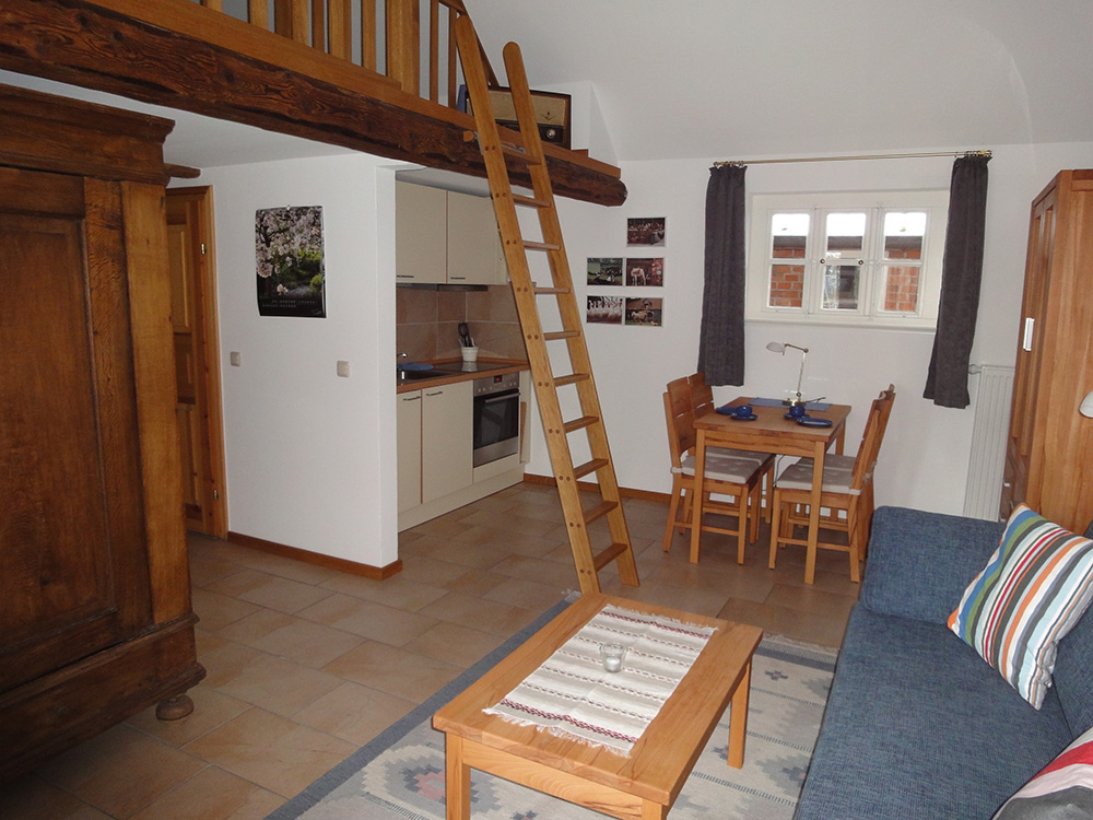 Unser Ferienappartement ist ca. 36qm groß und kann durch das Schlafsofa ebenerdig und barrierefrei genutzt werden. Die Wohnung hat einen separaten Eingang und einen eigenen Autostellplatz. Den ehemaligen Schweinestall haben wir zur Einraum-Wohnung umgebaut.