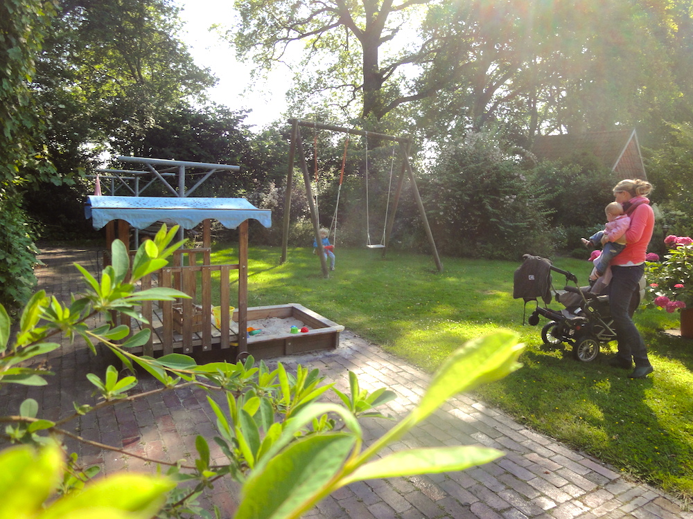 Zur Ferienwohnung gehört ein geschützter Außensitzplatz mit Innenhofcharakter und Morgensonne. Für unsere kleinen Gäste haben wir eine Doppelschaukel, Spielhäuschen und einen Sandkasten eingerichtet. Diese befinden sich auf einem sonnigen Rasenplatz neben der Scheune. Hier finden Sie auch den Platz für die Sonnenliegen.